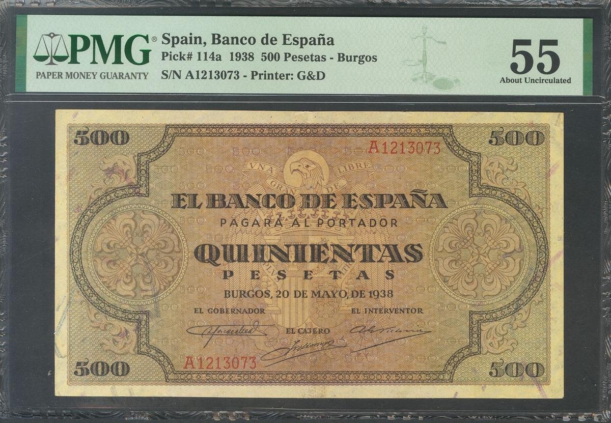 500 Pesetas. 20 de Mayo de 1938. Serie A. (Edifil 2017: 433). Inusual en esta conservación. EBC+. PMG55.