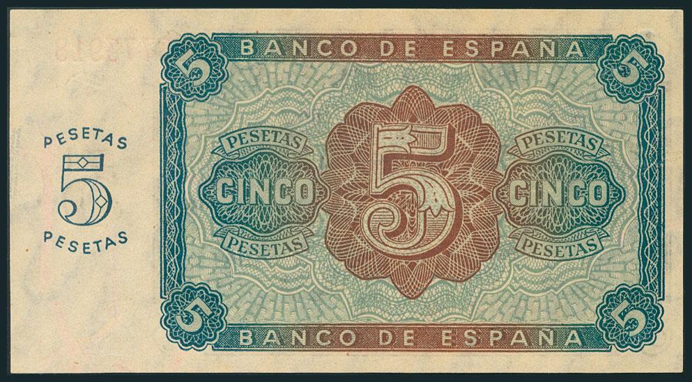 5 Pesetas. 10 de Agosto de 1938. Serie L. (Edifil 2017: 435a). SC.