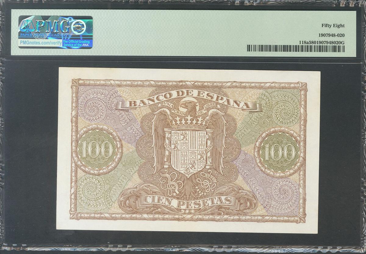100 Pesetas. 9 de Enero de 1940. Serie A. (Edifil 2017: 438). EBC+. Encapsulado PMG58.