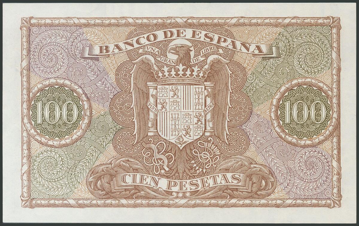 100 Pesetas. 9 de Enero de 1940. Serie B. (Edifil 2017: 438a). Inusual en esta conservación, apresto original. SC.