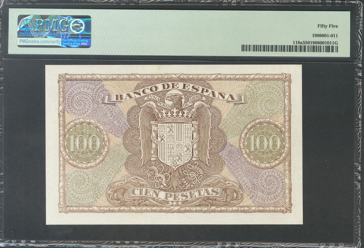 100 Pesetas. 1 de Enero de 1940. Serie E. (Edifil 2017: 438a). EBC+. Encapsulado PMG55.