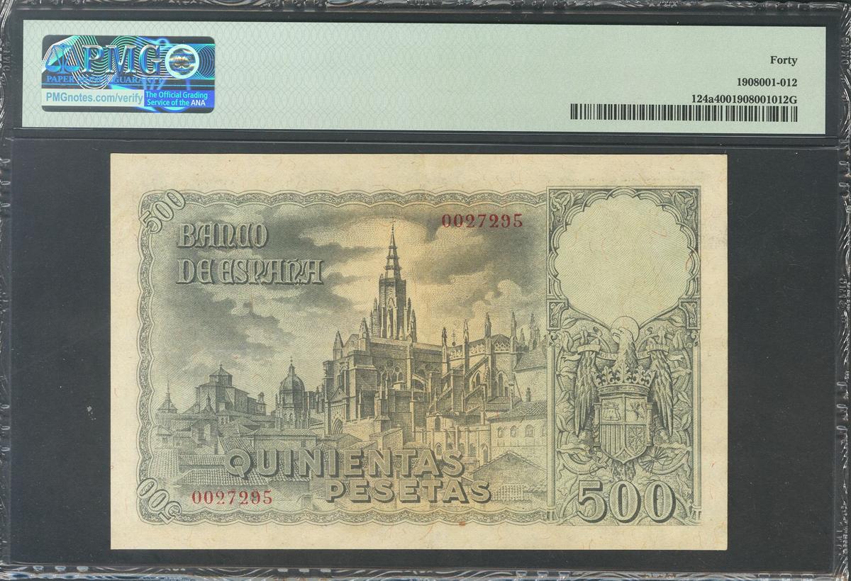 500 Pesetas. 21 de Octubre de 1940. Sin serie. (Edifil 2017: 444). EBC. Encapsulado PMG40.