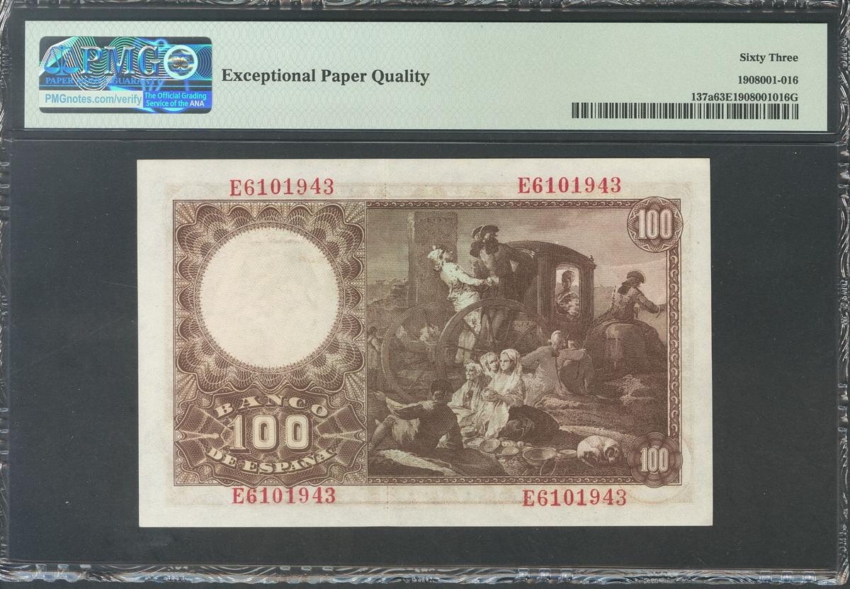 100 Pesetas. 2 de Mayo de 1948. Serie E. (Edifil 2017: 456a). Apresto original. SC. Encapsulado 63EPQ.