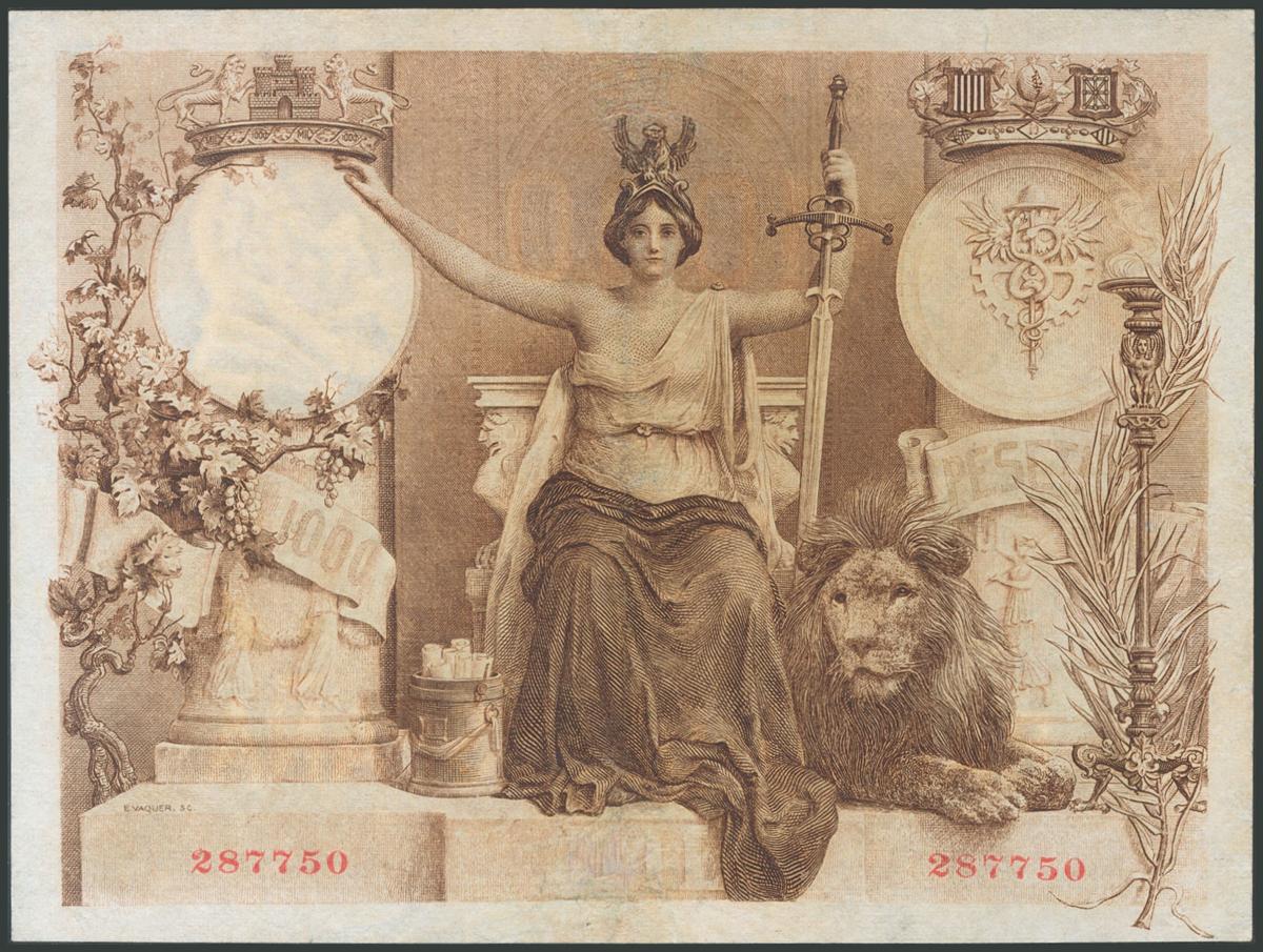 1000 Pesetas. 10 de Mayo de 1907. Sin serie. (Edifil 2017: 317). Inusual, profesionalmente restaurado.