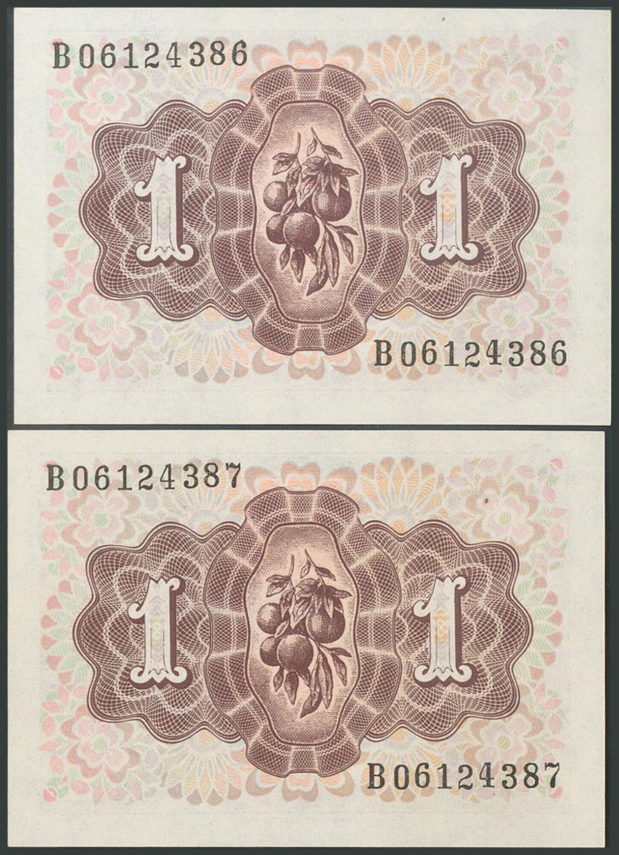 1 Peseta. 19 de Junio de 1948. Pareja correlativa. Serie B. (Edifil 2017: 457a). SC.