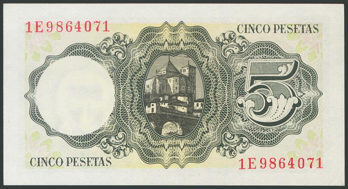 5 Pesetas. 16 de Agosto de 1951. Serie 1E. (Edifil 2017: 459a). Apresto original. SC.