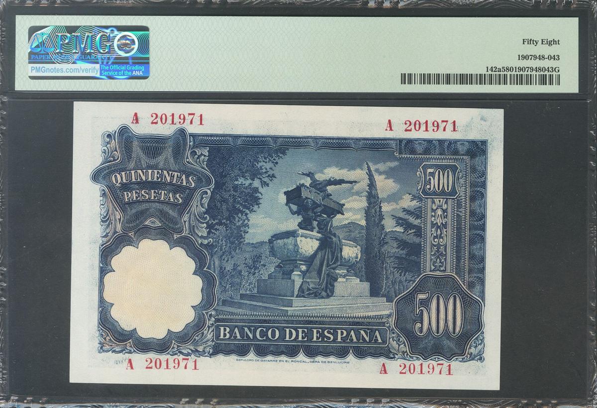 500 Pesetas. 15 de Noviembre de 1951. Serie A. (Edifil 2017: 460a). EBC+. Encapsulado PMG58.