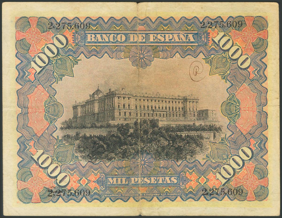 1000 Pesetas. 15 de Julio de 1907. Sin serie. (Edifil 2017: 322). Billete sin reparación alguna. MBC.