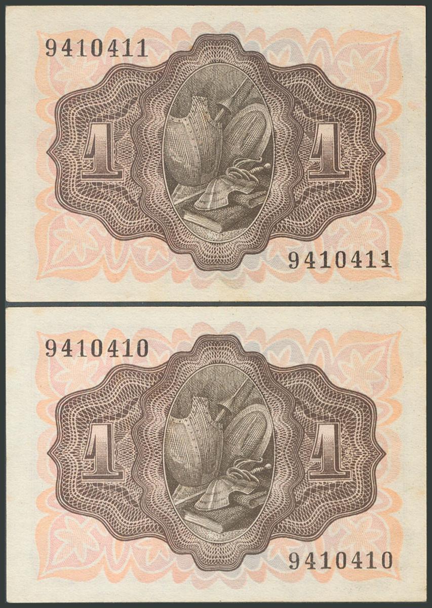 1 Peseta. 19 de Noviembre de 1951. Pareja correlativa. Sin serie. (Edifil 2017: 461). Mínimas manchitas de óxido. EBC+.