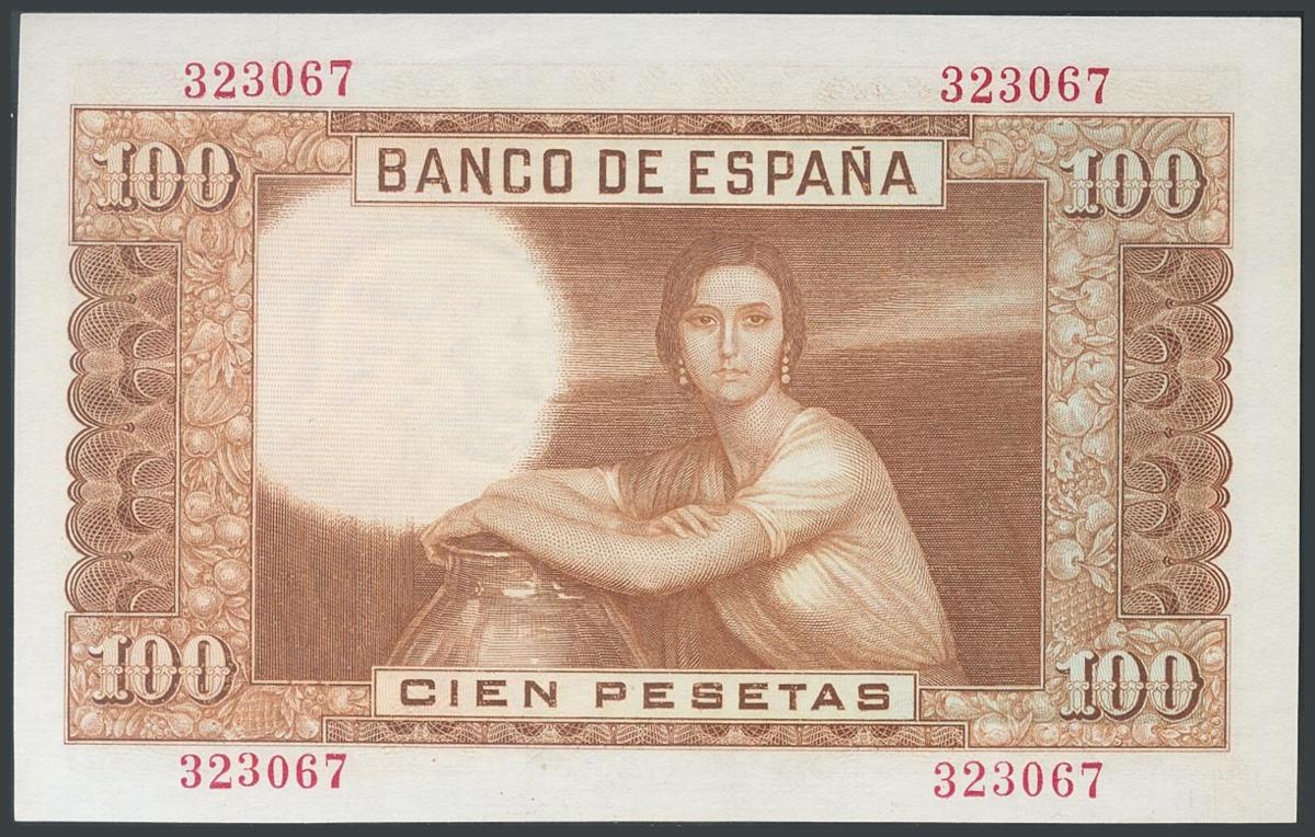 100 Pesetas. 7 de Abril de 1953. Sin serie. (Edifil 2017: 464). Imperceptible doblez vertical y conservando parte del apresto original. EBC+.