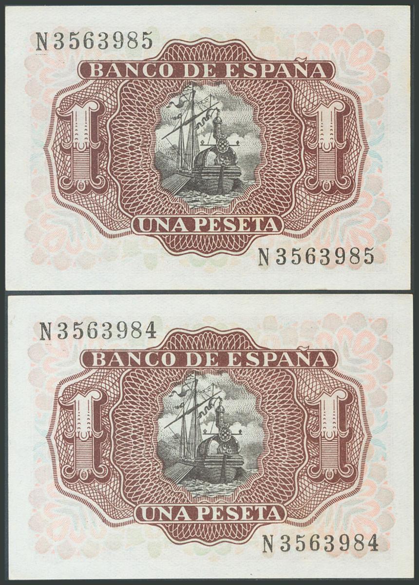 1 Peseta. 22 de Julio de 1953. Pareja correlativa. Serie N. (Edifil 2017: 465a). SC.