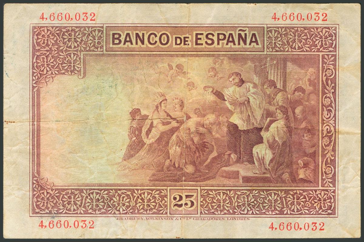 25 Pesetas. 12 de Octubre de 1926. Sin serie. (Edifil 2017: 325). BC-.