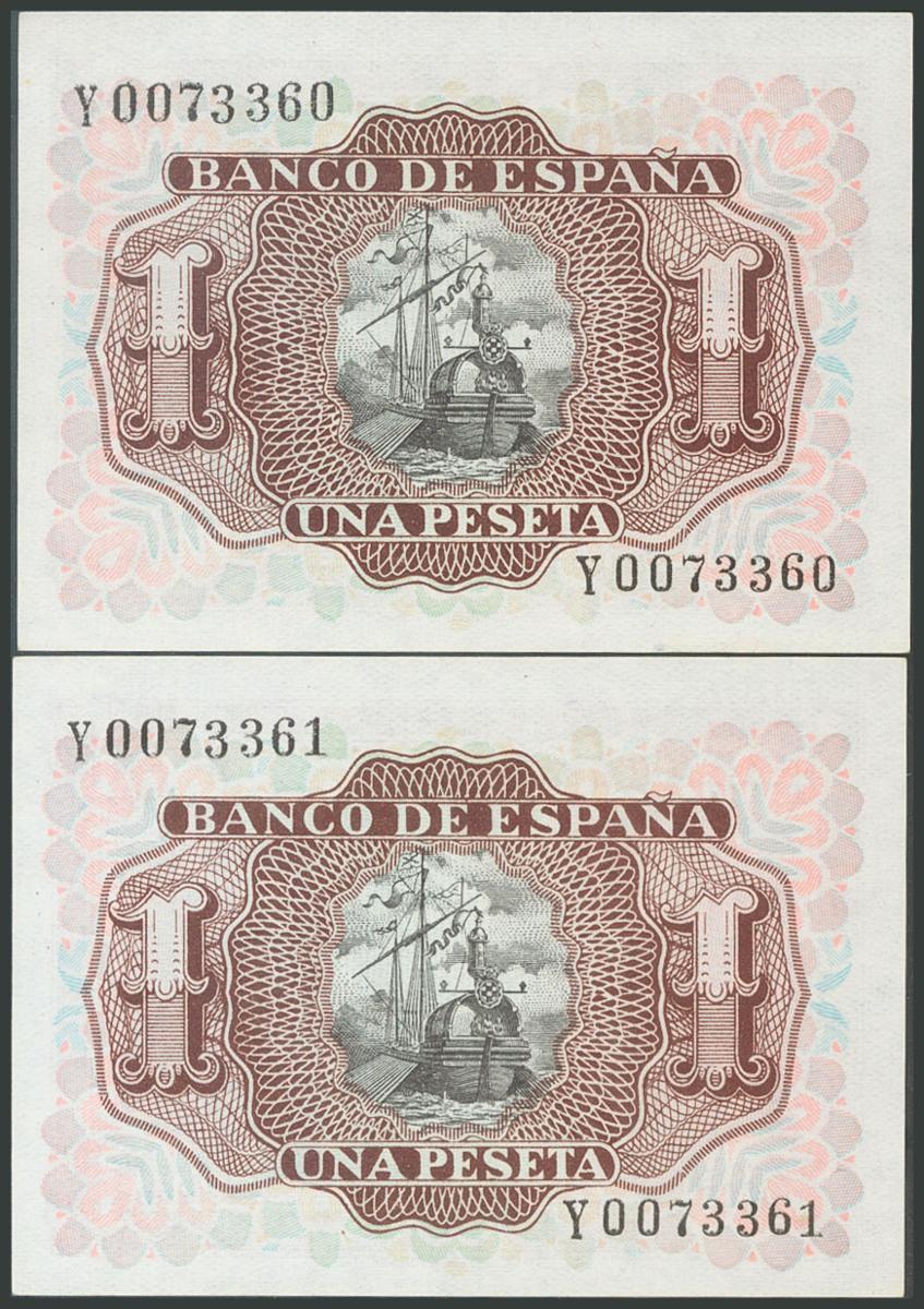 1 Peseta. 22 de Julio de 1953. Pareja correlativa. Serie Y. (Edifil 2017: 465a). SC/SC-.