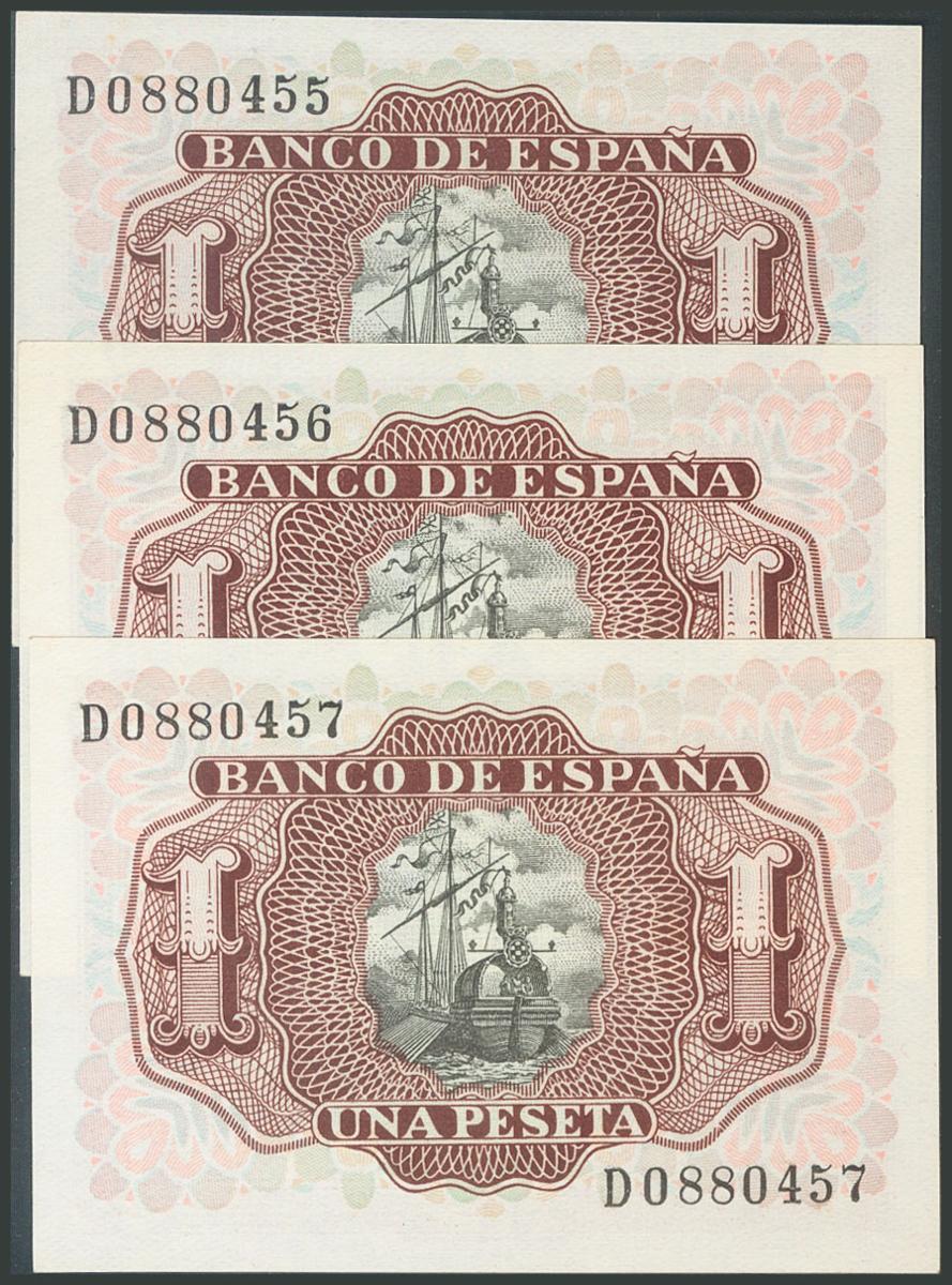 1 Peseta. 22 de Julio de 1953. Trío correlativo. Serie 1D. (Edifil 2017: 465a). SC.