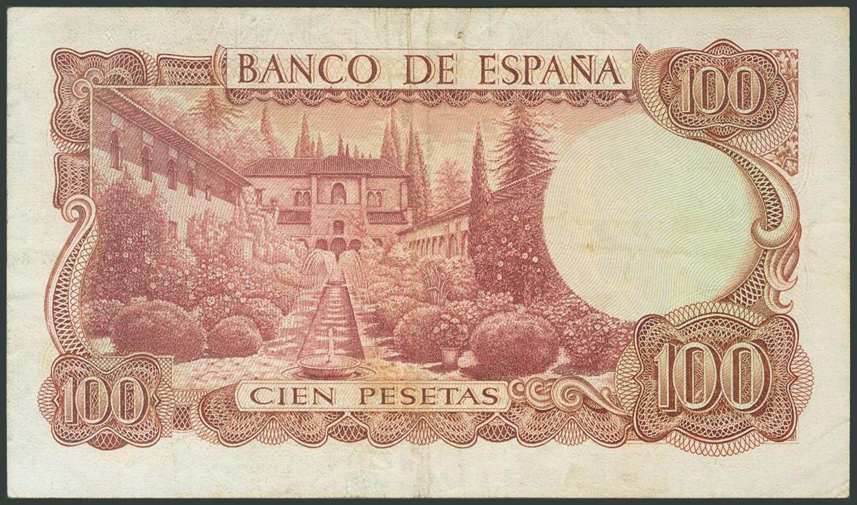 100 Pesetas. 17 de Noviembre de 1970. Sin serie. Error de guillotinado. (Edifil 2017: 470). MBC+.