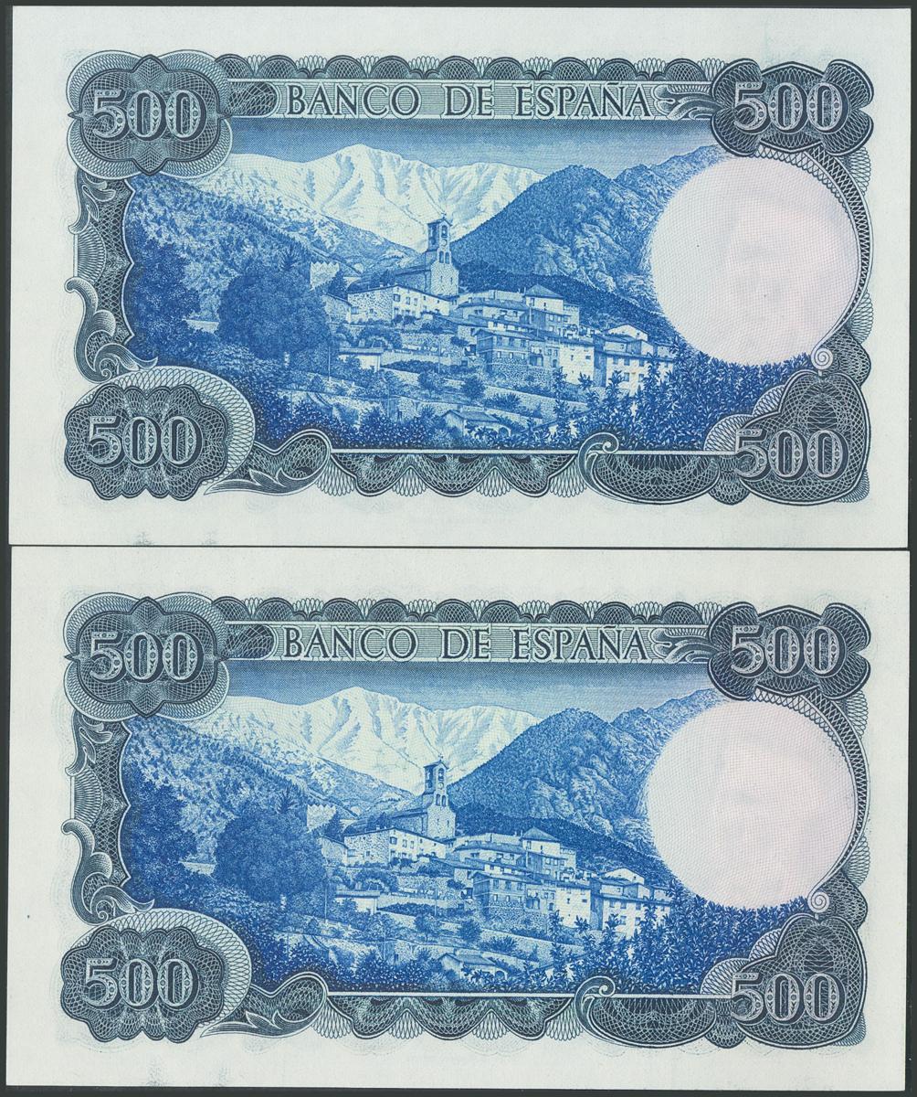 500 Pesetas. 23 de julio de 1971. Pareja correlativa. Serie M. (Edifil 2017: 473a). SC.
