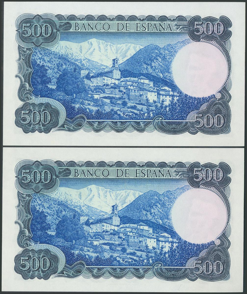 500 Pesetas. 23 de Julio de 1971. Pareja correlativa. Serie S. (Edifil 2017: 473a). SC.