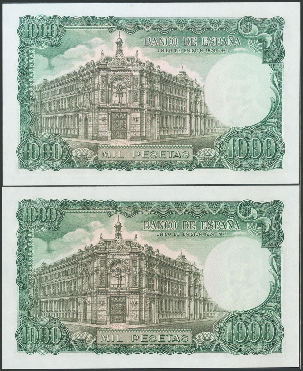 1000 Pesetas. 17 de Septiembre de 1971. Pareja correlativa. Sin serie. (Edifil 2017: 474). Apresto original. SC.