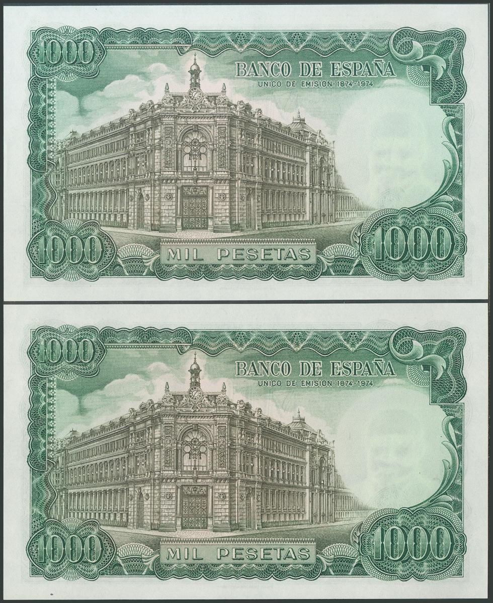 1000 Pesetas. 17 de Septiembre de 1971. Pareja correlativa. Serie 3H. (Edifil 2017: 474c). Apresto original. SC.