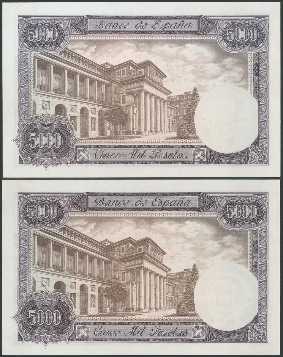 5000 Pesetas. 6 de Febrero de 1976. Pareja correlativa. Serie A. (Edifil 2017: 475a). Conserva todo su apresto original. SC-.