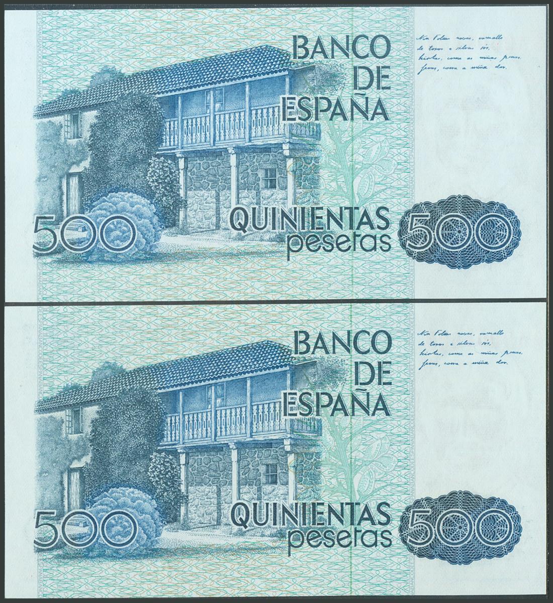 500 Pesetas. 23 de Octubre de 1979. Pareja correlativa. Serie 9A, numeración especial. (Edifil 2017: 476b). SC.
