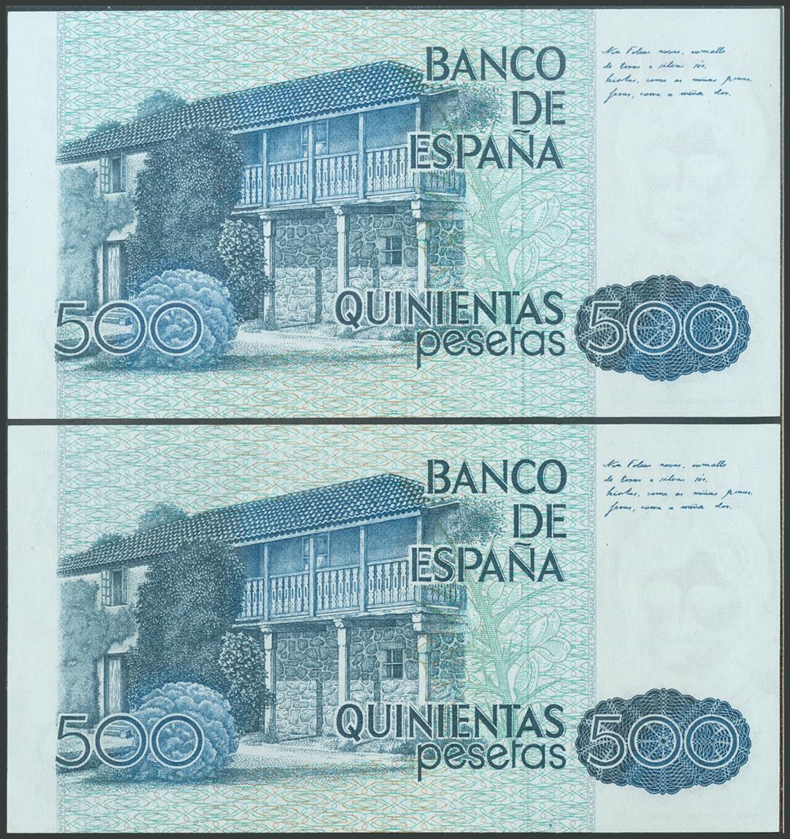 500 Pesetas. 23 de Octubre de 1979. Pareja correlativa. Serie I. (Edifil 2017: 476a). SC.