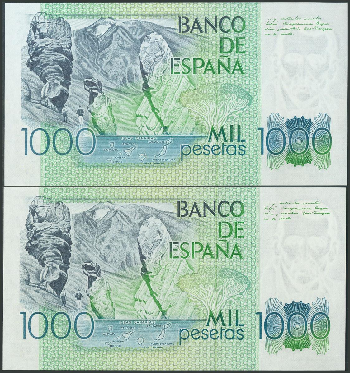 1000 Pesetas. 23 de octubre de 1979. Pareja correlativa. Sin serie. (Edifil 2017: 477).
