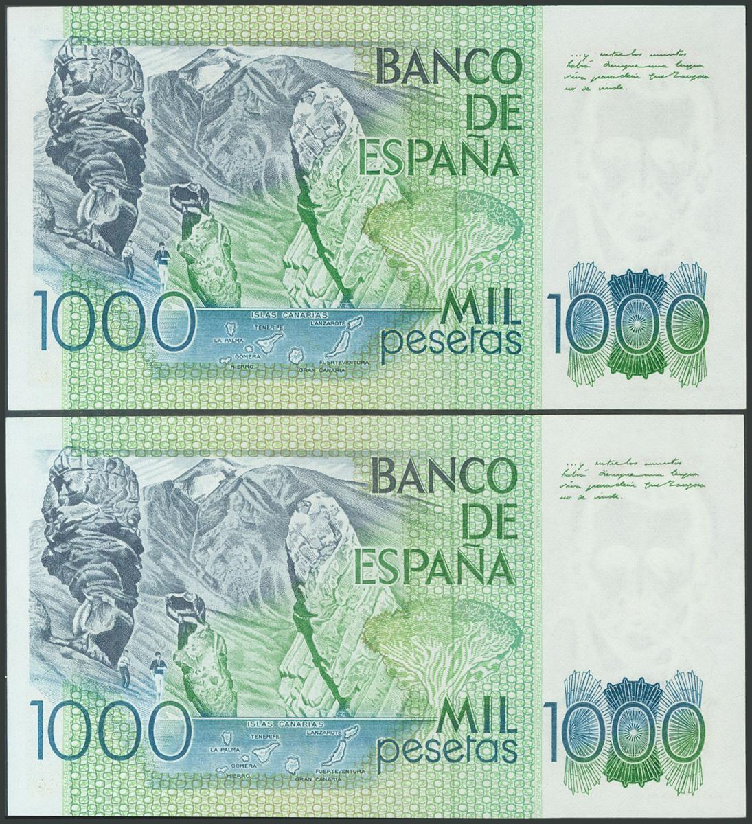 1000 Pesetas. 23 de Octubre de 1979. Pareja correlativa. Serie T. (Edifil 2017: 477a). SC.