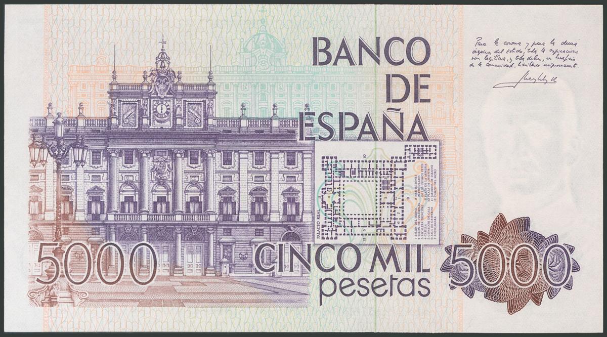 5000 Pesetas. 23 de Octubre de 1979. Serie 9A, numeración especial y capicúa. (Edifil 2017: 478b). Inusual. SC.