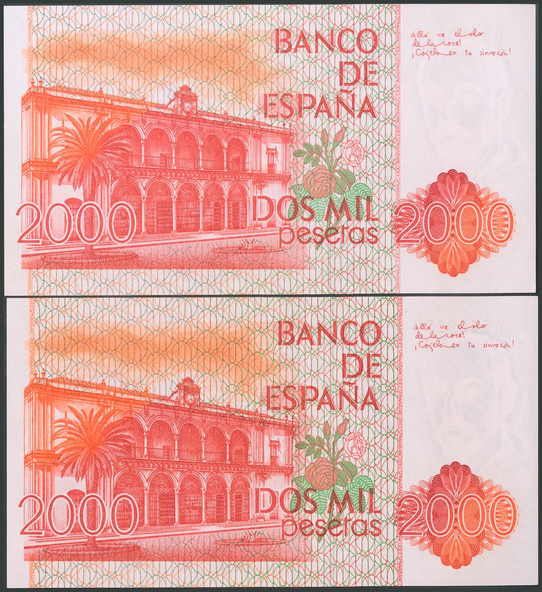 2000 Pesetas. 22 de Julio de 1980. Pareja correlativa. Serie A. (Edifil 2017: 479a). SC.