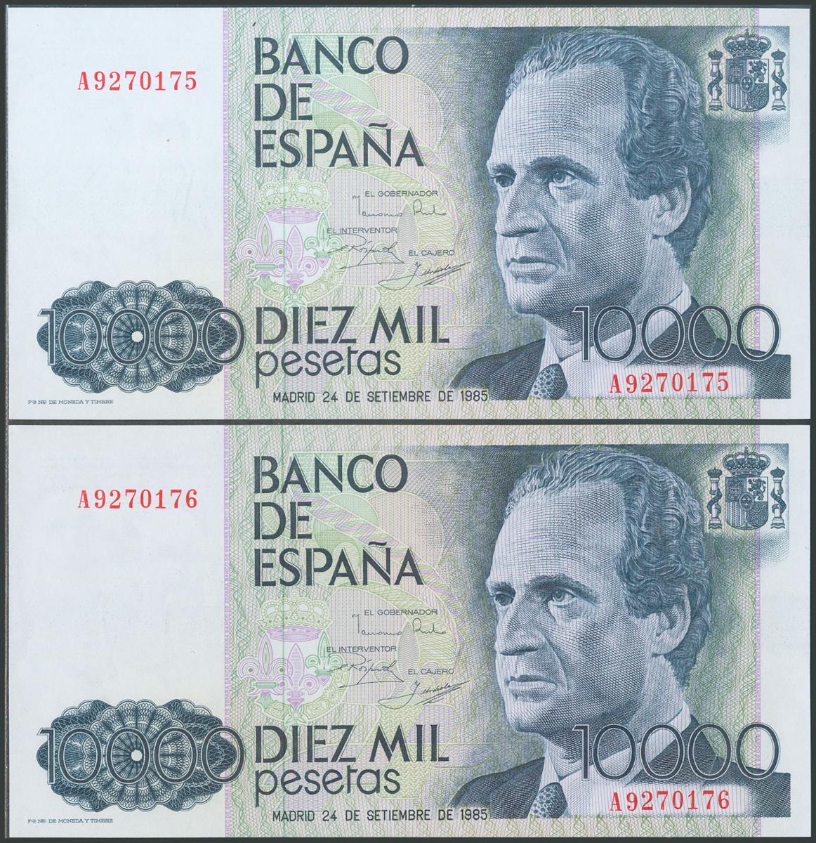 10000 Pesetas. 24 de Septiembre de 1985. Pareja correlativa. Serie A. (Edifil 2017: 481a). SC.
