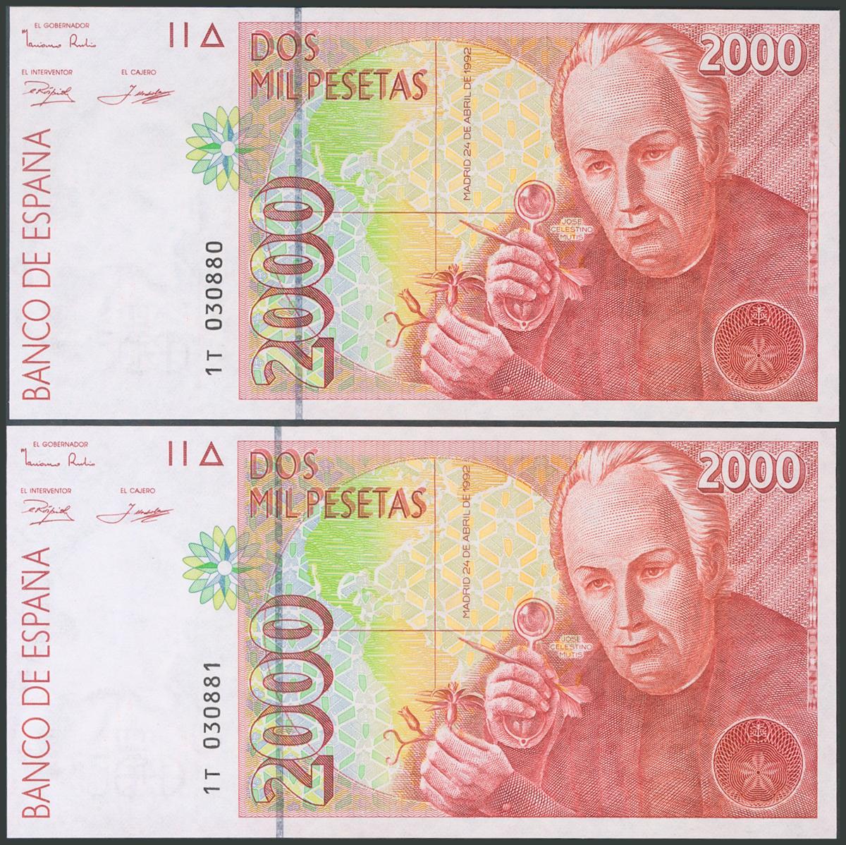 2000 Pesetas. 24 de Abril de 1992. Pareja correlativa. Serie 1T. (Edifil 2017: 482Aa). SC.