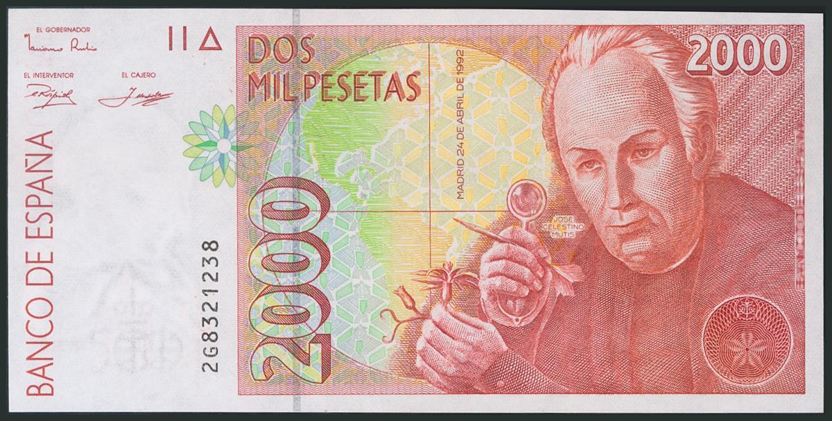 2000 Pesetas. 24 de Abril de 1992. Serie 2G y numeración capicúa. (Edifil 2017: 482a). SC.