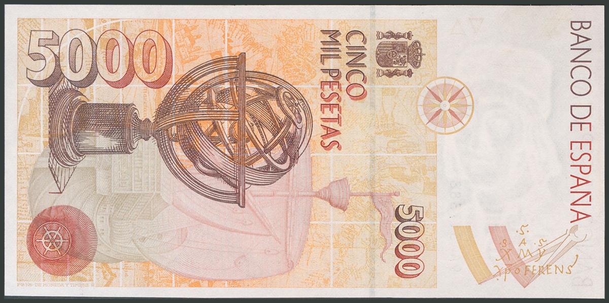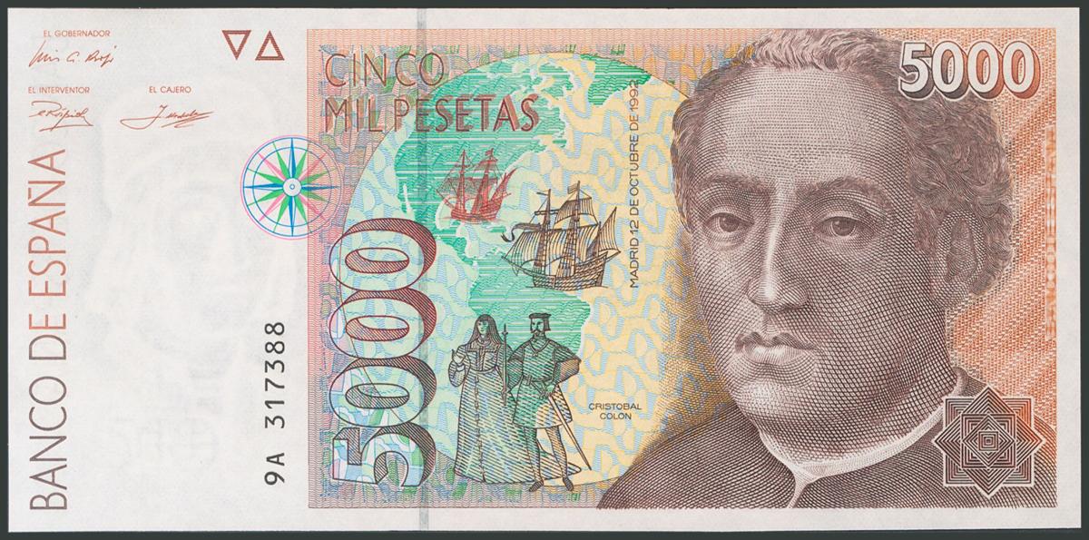 5000 Pesetas. 12 de Octubre de 1992. Serie 9A, numeración especial. (Edifil 2017: 484c). SC.
