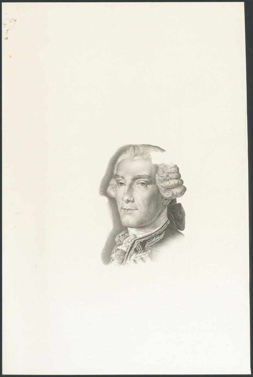Prueba del busto en color negro del reverso del billete de 10000 Pesetas emitido el 12 de Octubre de 1992, proyecto de José López López-Pavía. (Edifil 2017: 485Pa, variante "sólo busto"). Rara.
