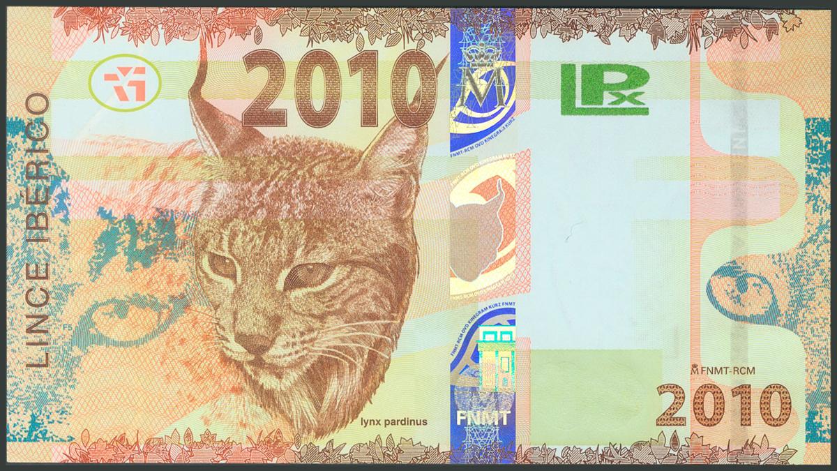 Prueba de billete del la F.N.M.T. emitida en el año 2010. No catalogado. SC.