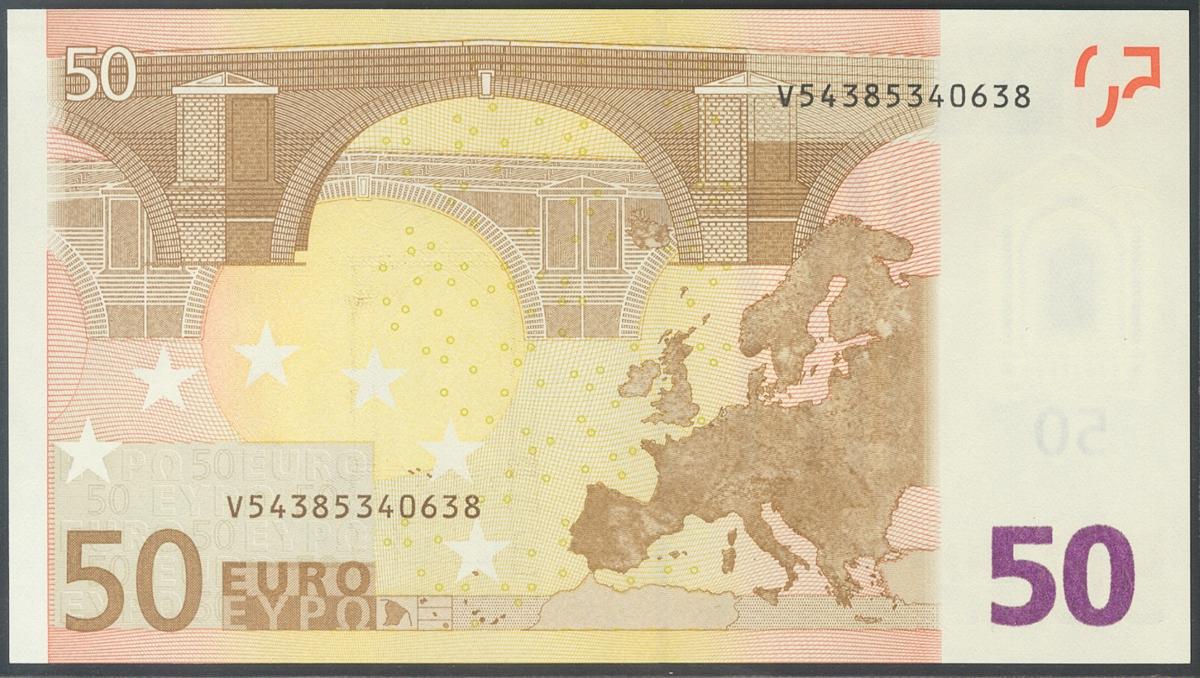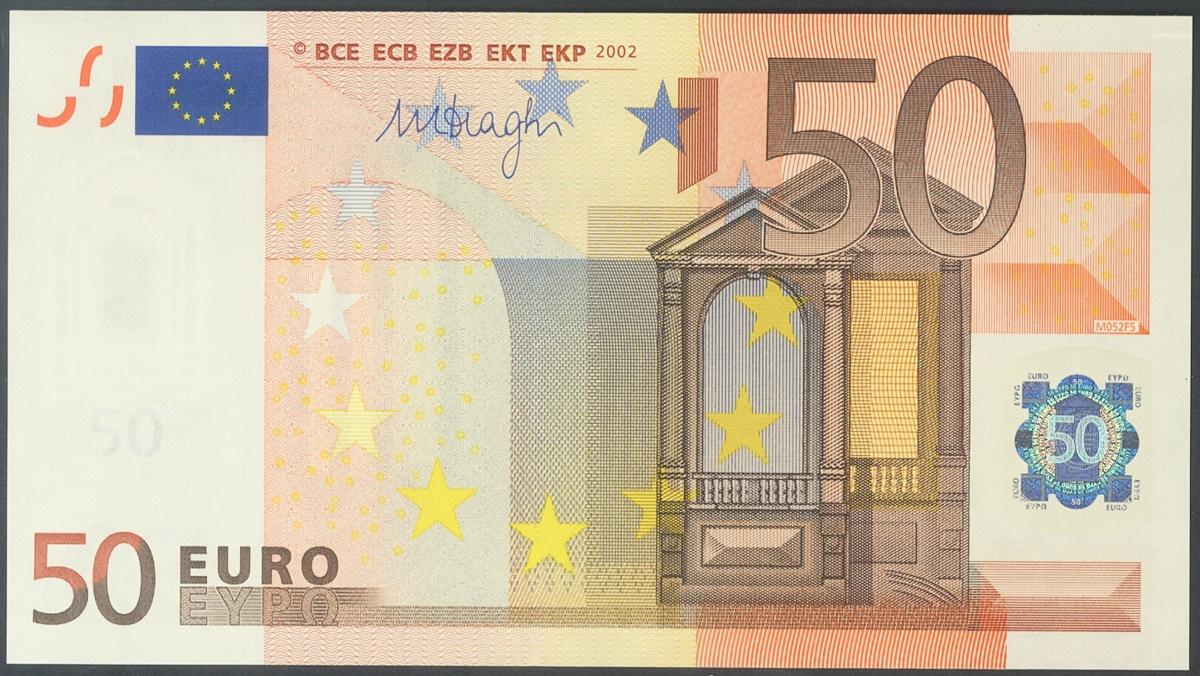 50 Euros. 1 de Enero de 2002. Firma Draghi. Serie V (España). (Edifil 2017: 489B). SC.