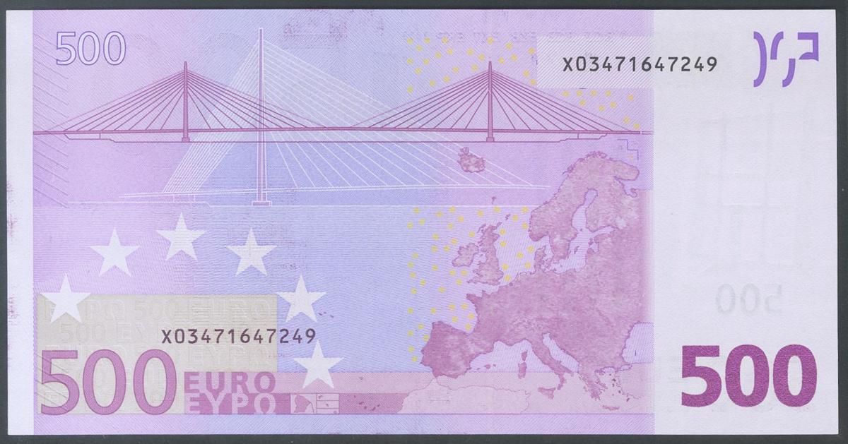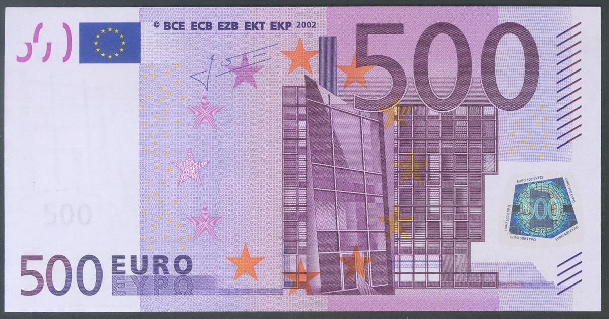 500 Euros. 1 de Enero de 2002. Firma Trichet. Serie X (Alemania). (Edifil 2017: 492A). SC.