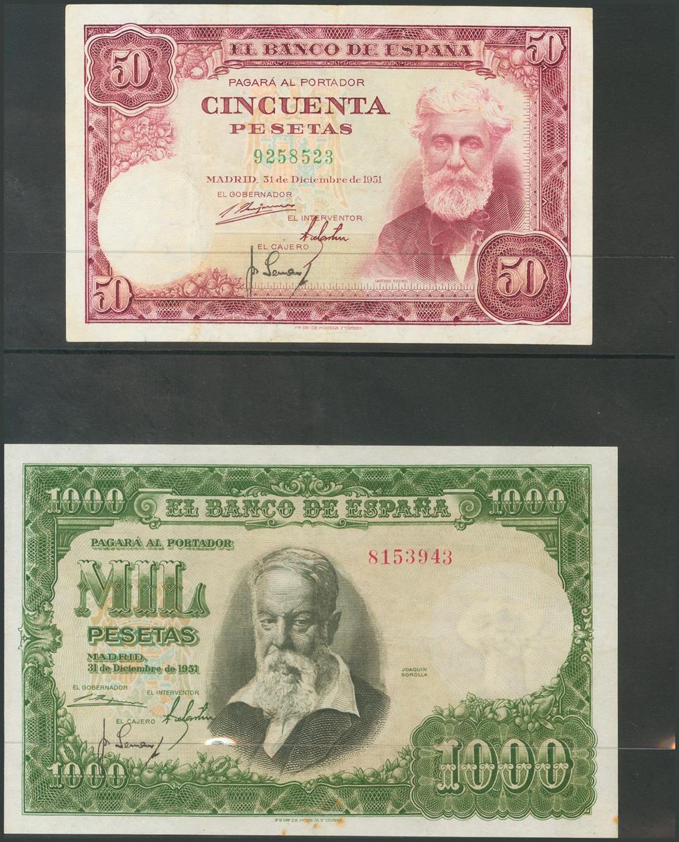 Bonito e interesante conjunto de 11 billetes del Banco de España de diversas emisiones y calidades. A EXAMINAR.