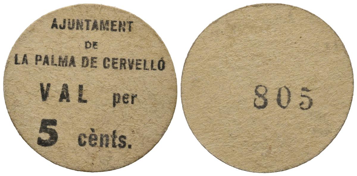 PALMA DE CERVELLO (BARCELONA). 5 Céntimos. (1937ca). (González: 9139). Muy raro. EBC+.