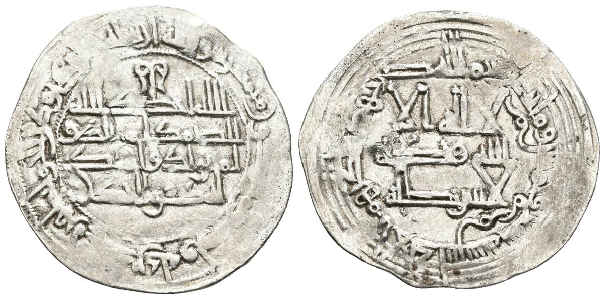 EMIRATO INDEPENDIENTE. Muhammad I. Dirham. 259H. Al-Andalus. Curiosa decoración al comienzo de la IIA. V.279var; Miles 151var. Ar. 2,15g. MBC. Rara.