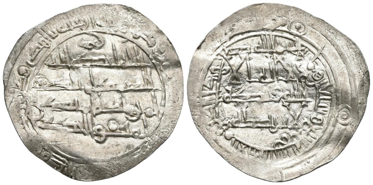 EMIRATO INDEPENDIENTE. 'Abd Allah. Dirham. 277H. Al-Andalus. Citando el nombre del grabador Musa fuera de la gráfila. V. No cita; Miles No cita. Ar. 2,60g. Leve grieta. EBC+. Año desconodico por Vives y Miles probablemente único ejemplar conocido que acompañado a su magnífico estado de conservación la convierte en una pieza excepcional. Rarísima.