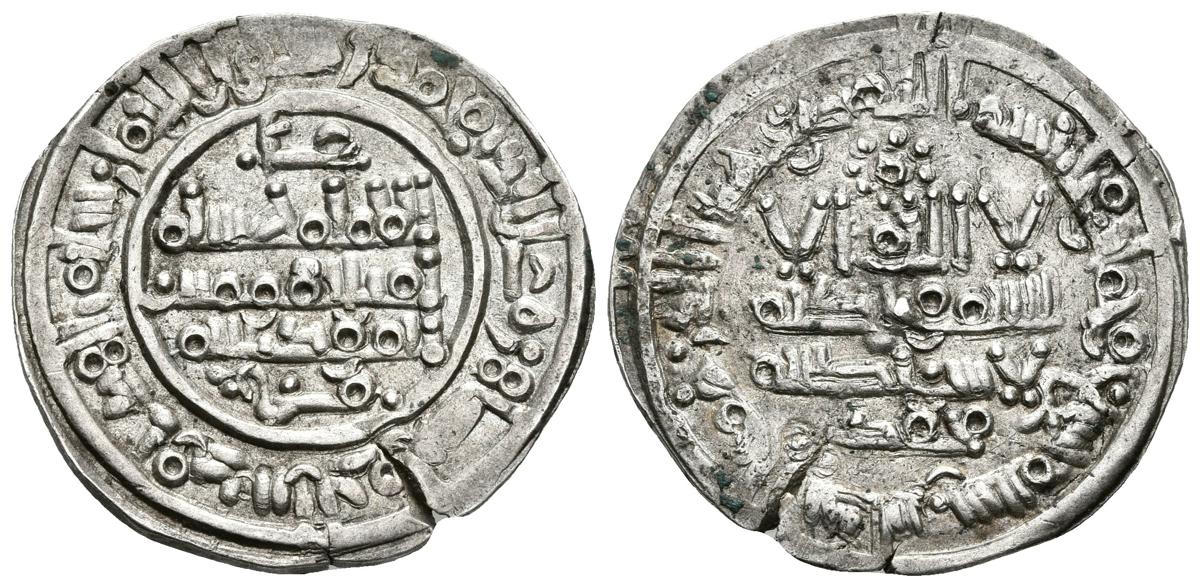 CALIFATO DE CORDOBA. Hisham II. Dirham. 389H. Al-Andalus. Citando a `Amir y Muhammad. V. 551; Miles 316. Ar. 3,54g. EBC/EBC-. Escasa.