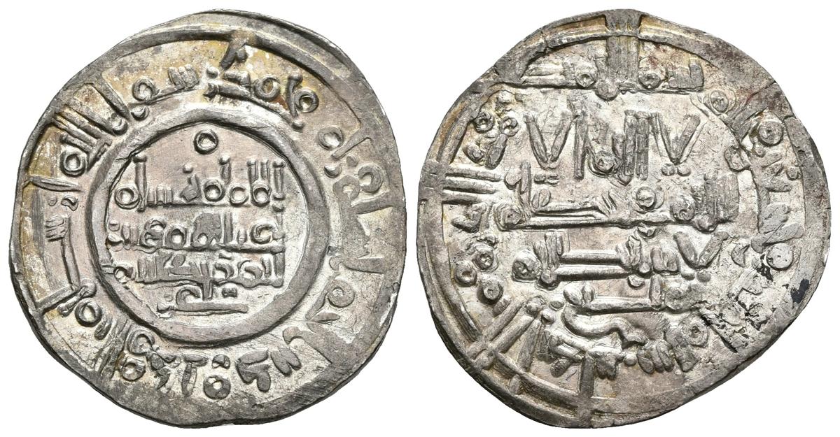 CALIFATO DE CORDOBA. Hisham II. Dirham. 392H. Al-Andalus. Citando a Tamliy en la IA y `Amir en la IIA. V-549. Ar. 2,86g. Parte del brillo original y preciosa pátina. MBC+/EBC-.