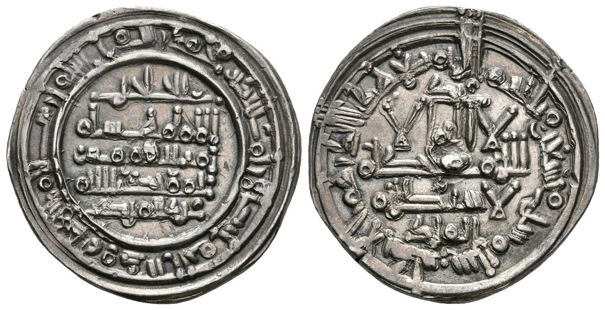 CALIFATO DE CORDOBA. Hisham II. Dirham. 396H. Al-Andalus. Citando a `Abd Al-Malik y Al-Hayib con `Abd Al-Malik. V. 588. Ar. 3,98g. Buen ejemplar. EBC+.