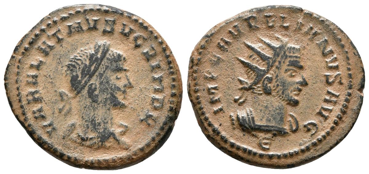 AURELIANO con VABALATO. Antoniniano. 270-272 d.C. Antioquía, 5º Oficina, 1ª Emisión. A/ Busto radiado con coraza a derecha. IMP C AVRELIANVS AVG. R/ Busto laureado y drapeado con coraza a derecha. VABALATHVS V CRIM D R, en exergo E. RIC V 381; BN 1248-51. Ae. 4,19g. EBC/MBC+.