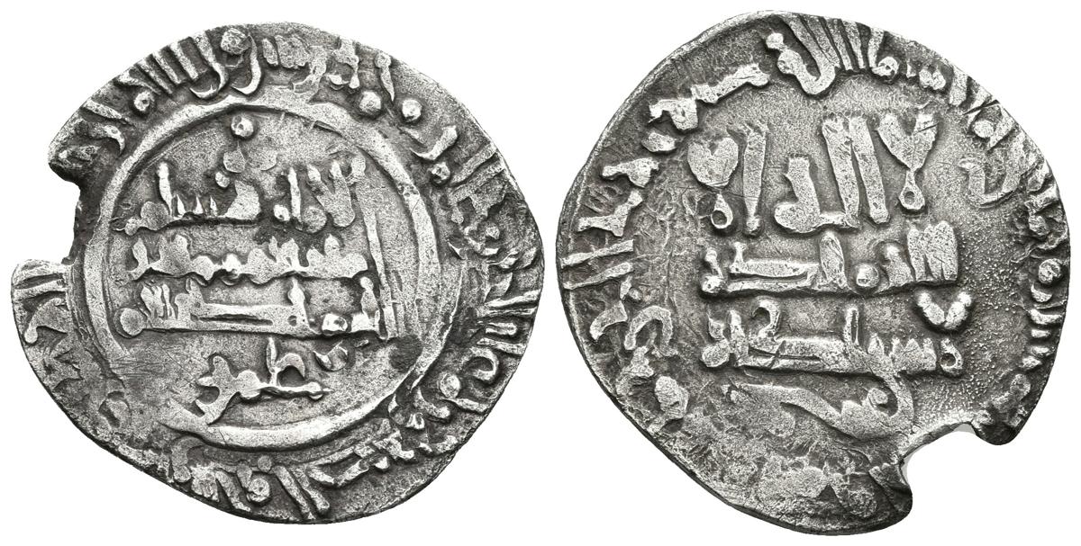 CALIFATO DE CORDOBA. Hisham II. Dirham. 382H. Madinat Fas (Fez). Citando 'Amir. V. No cita, Miles 296. Ar. 3,27g. Muesca. MBC.