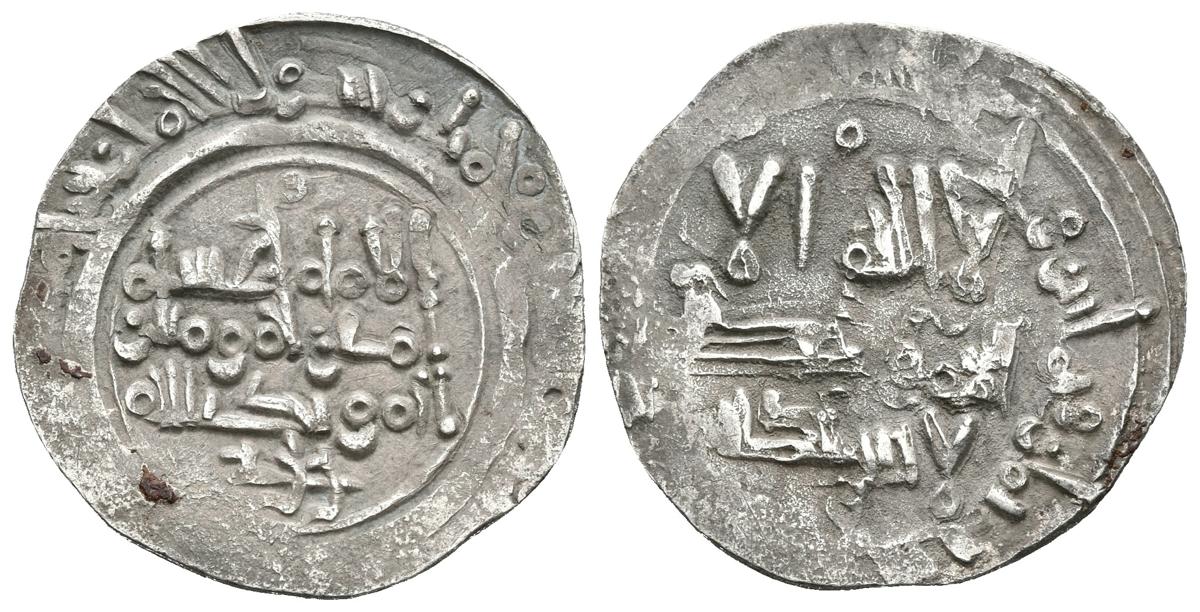 CALIFATO DE CORDOBA. Hisham II. Dirham. 388H. Madinat Fas (Fez). Citando Ziri ibn 'Atiya. Estas acuñaciones se realizaron durante la rebelión contra Al-Mansur ibn Abi 'Amir, se reconoce a Hisham II mientras que se elimina la mención a 'Amir. V. 618. Ar. 2,98g. MBC. Escasa.