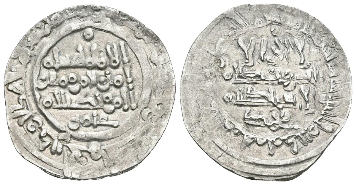 CALIFATO DE CORDOBA. Hisham II. Dirham. 390H. Madinat Fas (Fez). Citando ` Amir y Muhammad. V. 625. Ar. 2,97g. MBC. Escasa.