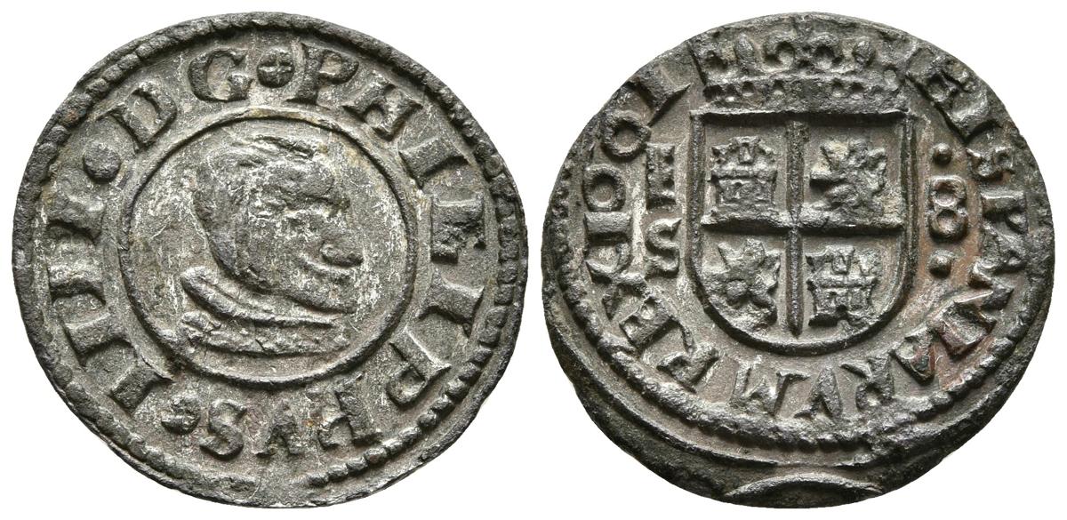 FELIPE IV. 8 Maravedís. 1661. Segovia S. Cal-1531; J.S. M-538. Ae. 2,23g. Conserva parte del plateado original. EBC-/EBC. Buen ejemplar.